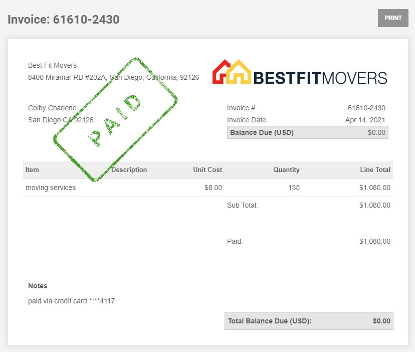Our family has moved around the San Diego area twice in the last year- the first time with Best Fit Movers went very well so was very easy to call them again and set another move with more stuff. They are friendly and super professional. The movers take care of everything, packing and moving .At the end of the move they rearranged some heavy furniture at the new house when we realized it wouldn't fit the way we had hoped.
