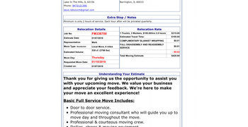 I reduced the furniture to be picked up including elimination of a queen bedroom set (headboard, footboard, dresser, night stand), removed the treadmill and exercise bike, removed the big screen TV (unwrapped), removed the lawn mower, removed the recliner chair, removed ALL 15 pieces of art (5 large, 10 medium) that they wanted to charge an additional $30-$50 just for wrapping, reduced the box count originally at 60, removed the commercial oven – the size of a fridge, had them NOT include the shelves of our refrigerator – again a $30-$50 wrapping charge per shelf because they were glass, and the original $3,500 quote still ended up over $4,600, including an $800 charge in supplies (my contract specifically says packing tape was included, but I was still charged by the folks picking up with no compromise, and if I paid in cash, they would somehow waive the Chicago/IL sales tax - not sure how they get away with that). I signed an agreement to pay another $1,700 upon delivery to South Carolina (cash or postal money order).