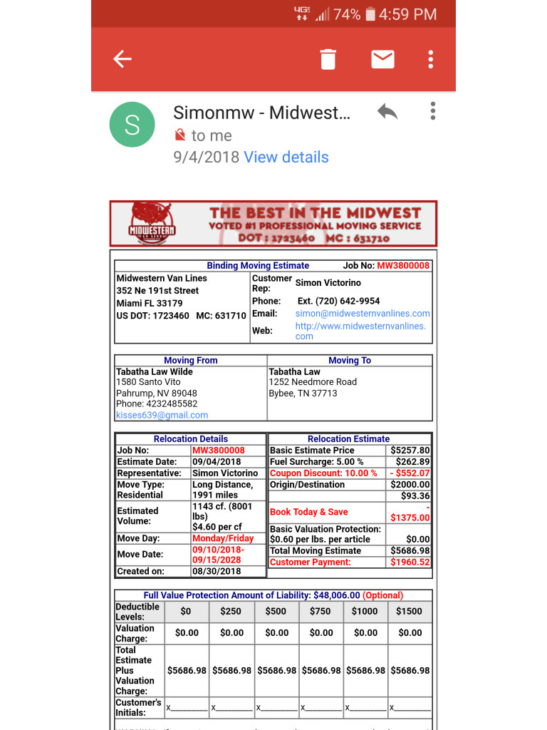 Do not pick Midwestern Van Lines. They are awful to work with. They gave us a great veteran discount and were easy to work with until after they picked our stuff up. The price went up twice after they picked it up. Our stuff stayed in WA and was finally delivered a month later. They hired two guys off Craigslist to help unload our stuff and during the process they stole our 65in TV and multiple other boxes were missing. They damaged several pieces of furniture and even tried to give us someone else’s bed. In the end they tried to give us $75 for everything and we refused. I recommend a company where you pack it yourself and it gets transported in a trailer with no one else’s stuff.